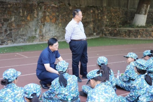 休息间隙,刘书记、许院长、耿书记和孙老师深入新生群体,俯下身去与同学们悉心交流。各位领导老师认真询问了新生军训情况,叮嘱同学们在完成军训任务的同时一定要多喝水、多休息,警防身体透支,遇到困难及时与辅导员老师沟通。同时表示,军训不仅时国防义务教育和爱国主义教育的重要环节,更关乎个人品质的磨砺与成长成才,希望同学们认真参与,收获一段难忘的军训记忆。最后强调,大一是大学非常关键的一个阶段,希望同学们能对大学学习做好全面的准备,并且要在对专业进行全面的了解后再进行选择,切勿盲从社会大流。本次慰问活动的交流环节,令同学们深受启发,获益良多。
