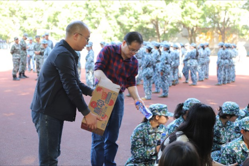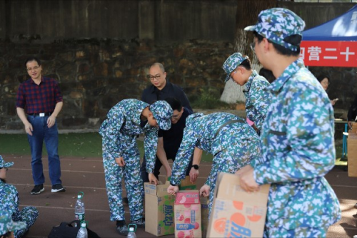 到达新生训练场后,22级辅导员孙立明主持活动,向在场人员介绍了前来“送清凉”的领导。随后,四位领导老师和院志愿者们给新生分发了此行带去的脉动饮料。时值十月,虽然长沙气温有所下降,但新生训练辛苦,收到饮料的新生们表示非常开心,对学院领导的慰问和鼓励表示感谢。