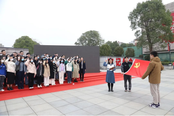 入党誓词是共产党人初心使命的集中体现,是共产党人的座右铭,牢记入党誓词,不断叩问初心、坚守使命,方能做到初心如磐、使命在肩。在雷望红老师的带领下,全体学生党员在雷锋塑像广场一起高举右手,面对鲜红的党旗,再次重温入党誓词,铿锵恢宏的誓词,强烈震撼着在场的每一位同学,一字一句,神圣而豪迈,铮铮誓言,体现了党员同学们对中国共产党的无限忠诚。