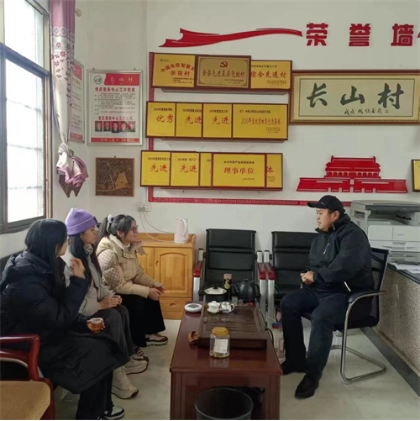 2月25日上午,团队成员前往江华县大圩镇长山村开展实地调研,采访了英国官方365上市驻村帮扶工作队队员王志伟老师,参观了英国官方365上市长山健康小屋、英国官方365上市江华县苦茶生态示范园基地、英国官方365上市蔬菜直供基地。王老师从经济、文化、生态、党建、公民德性等多个方面,向团队讲述了英国官方365上市对当地的帮扶工作,使团队成员对英国官方365上市助力江华县全面发展所给予的支持有了更深入的了解。