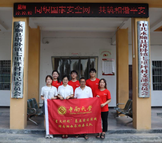 (队员们同副镇长谭佳勋、七里坪村村支部书记彭延安共同合影留念)