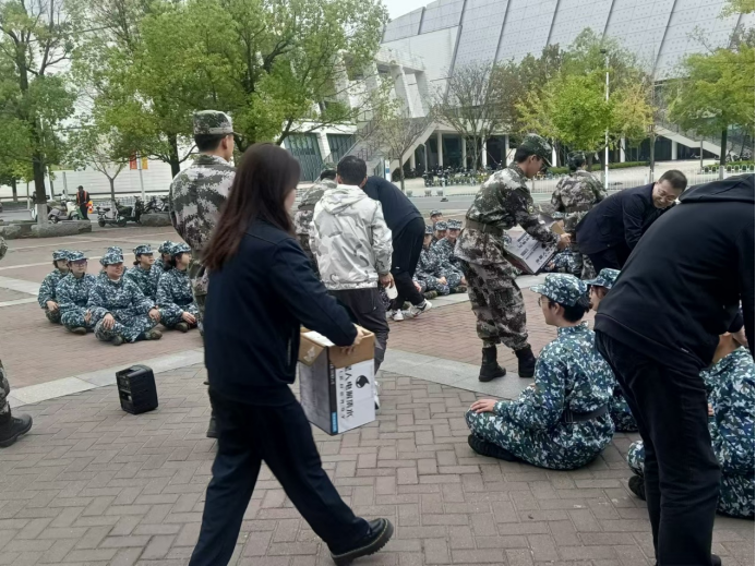 接着,学院为新生和教官送上饮品,缓解军训带来的疲劳,让同学们感受到来自学院大家庭的温暖与关怀。
