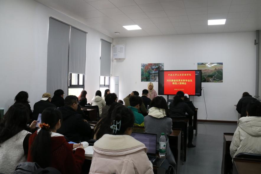 2月25日中午12时30分,我院于公管院楼405室举行2025届省级优秀本科毕业生候选人答辩会。学院党委副书记耿贵斌、院学工办主任徐立坤,班导师代表陈文琼、冷波,2025届毕业生辅导员梁慧、本科生辅导员张宇奇、兼职辅导员李文嘉以及各班学生代表参会并担任评委。参加答辩会的2025届本科生候选人共9人,最终选出3名省级优秀本科毕业生作为学院推荐人员。