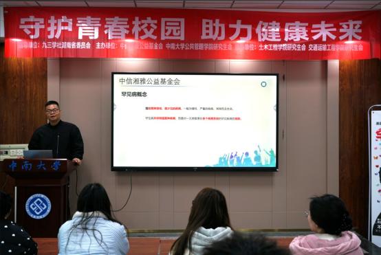 3月29日下午15时,罕见病主题科普宣讲会在世纪楼B302教室拉开帷幕。中信湘雅公益基金会戴老师围绕“认知、行动、希望”这一主线,以自身多年公益经历为引,深度剖析罕见病群体面临的多重社会困境。随后,聂洪川医生从医学角度,用通俗易懂的语言对罕见病进行了深入解读。在答疑互动环节,同学们积极提问,与老师们进行了热烈的交流。“身处泥泞,但有向上生长的勇气;身处黑暗,但追逐裂缝中的阳光。”宣讲会的最后,戴老师的这句话深深打动了在场的每位同学。