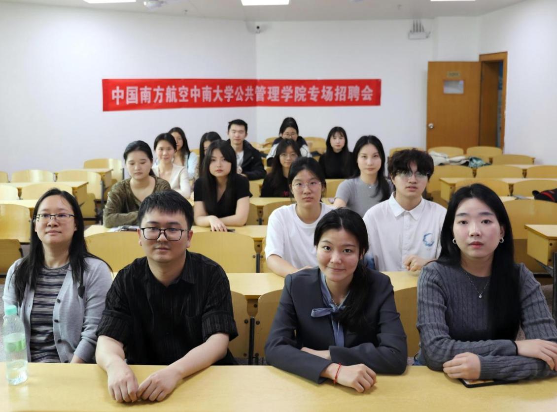 宣讲会伊始,南航集团招聘负责人对到场学子致以诚挚欢迎,并从企业发展历程、行业战略地位、湖南分公司布局及客运领域前沿动态等维度展开介绍。会上重点解读了南航湖南分公司的区位优势、业务增长点及未来规划,并系统梳理了本次招聘的岗位需求、任职要求及职业发展通道,特别强调企业为员工提供的多维度成长平台与“假期+福利”双轨服务体系。在互动环节中,与会学生围绕职业晋升机制、岗位适配能力、地域分配政策等核心关切踊跃提问,主讲人逐一给予针对性解答。宣讲会结束后,同学们热情不减,与企业代表展开深度交流。