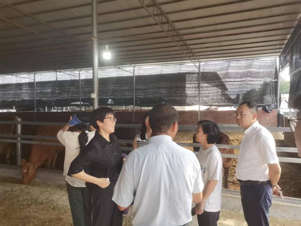 当日下午,实践团成员走进沱江镇大林边村,将调研目光投向乡村产业振兴一线。在县委常委、副县长安青和曹斌的带领下,团队实地参观了特色黄牛养殖基地,通过细致观察和现场访谈,详细了解该村黄牛养殖产业的发展规模、运营模式、技术应用、市场销路以及为村民带来的增收效益。