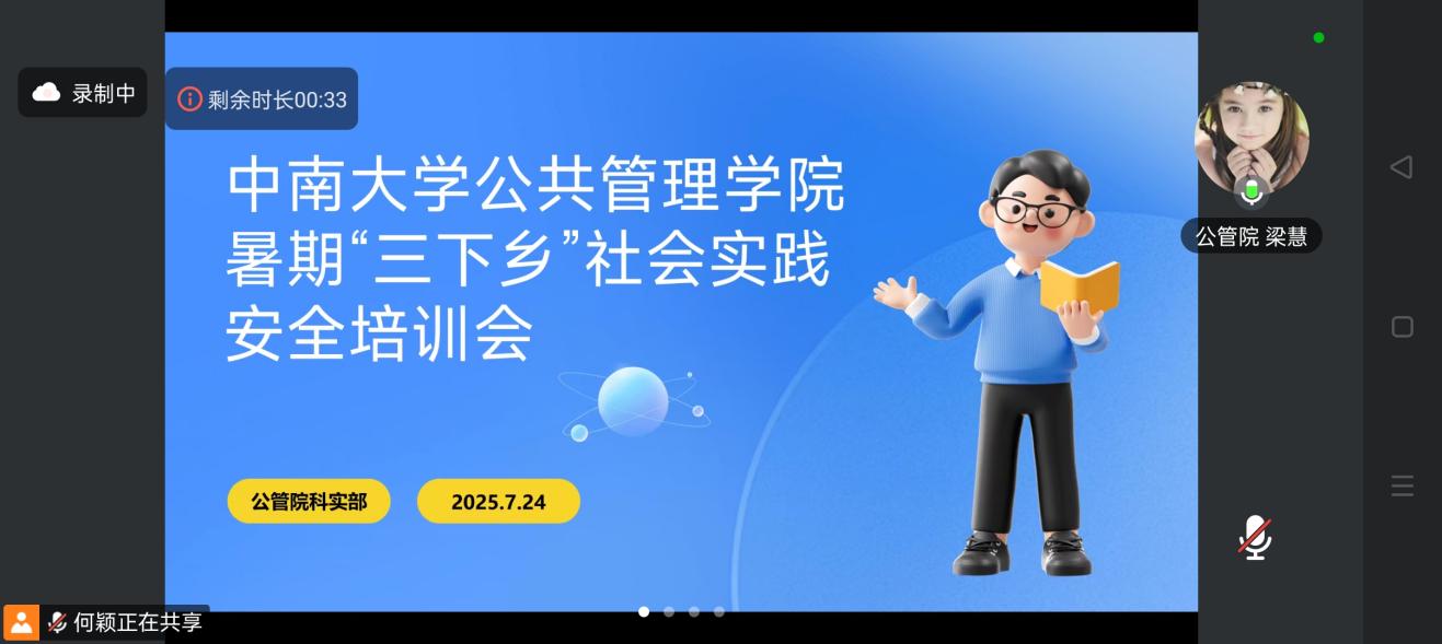 为保障暑期社会实践活动安全有序开展,我院于7月24日晚上8时于腾讯会议组织召开2025年暑期社会实践安全培训会议。院团委书记梁慧、各实践团队负责人及科创实践部成员参加,会议由科创实践部何颖主持。