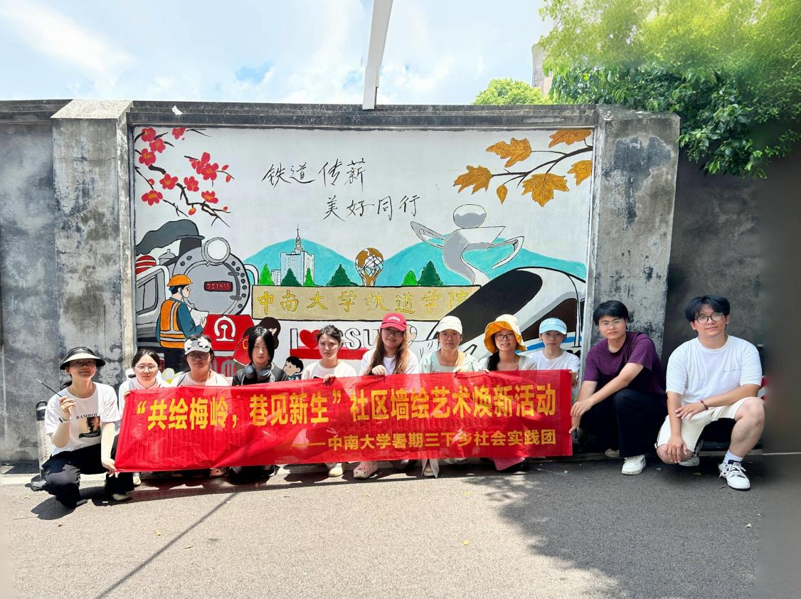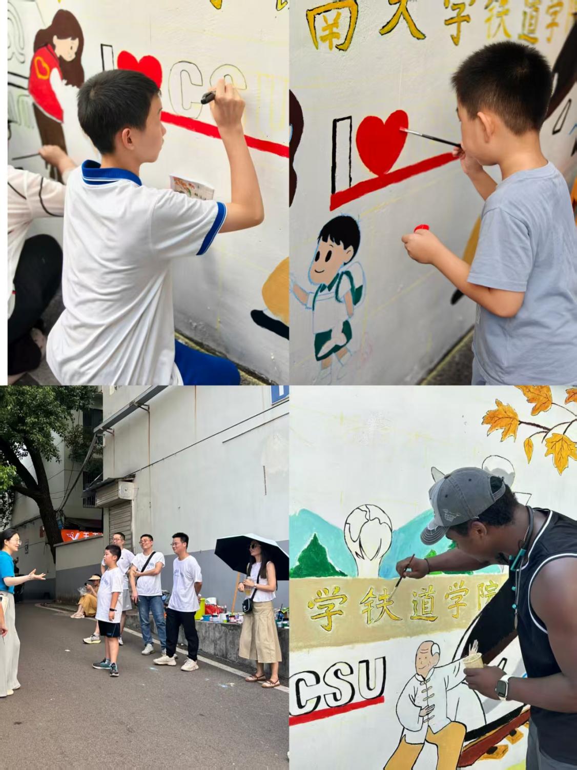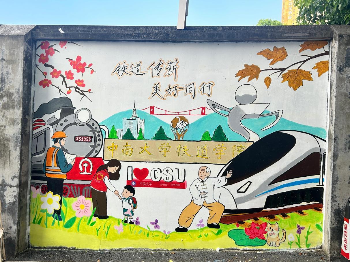 为展示校园文化底蕴,美化校园居民环境,8月4日上午,在英国官方365上市铁道管委会和英国官方365上市轨道交通科普基地的支持下,“共绘梅岭,巷见新生”暑期实践团以“铁道传薪,美好同行”为主题,英国官方365上市天心校区东二门附近墙面,完成了一幅融合铁道历史、校园记忆与社区烟火气的墙绘作品。这幅由大学生志愿者、社区居民等多方共创的艺术作品,不仅美化了社区环境,更成为“艺术赋能社区治理”的创新实践。