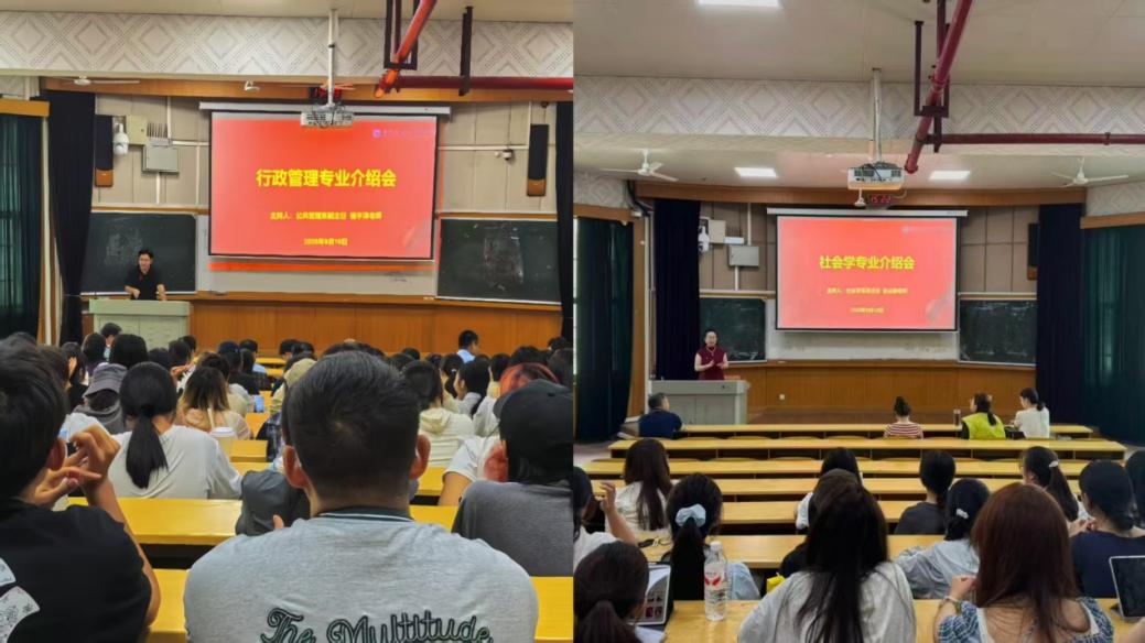 会后,彭远春老师、米莉老师、杨宇泽老师分别主持召开了社会学专业与行政管理专业介绍会。会上介绍了本专业的课程设置、师资力量、教育理念、教学目标和教学安排,帮助同学们跳出课程表面认知,深入理解专业的价值与发展潜力。同时,各系教师代表也分享了学习、工作方法和生活经验,在交流互动环节,针对同学们关心的书籍阅读、竞赛参与、导师选择、实践调研等问题,在现场给予清晰指引,不仅为同学们更好地适应专业学习、融入新生活提供了帮助,也加深了师生间的交流与互动。