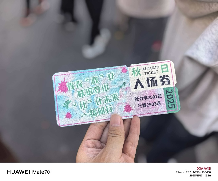 11月15日下午2时,我院社会学2501班与行政管理2503班联合举办了一场以“青春‘政’好联谊登山,‘社’计未来一路同行”为主题的登山团日活动,院学工办主任徐立坤与班导师谢刚出席本次活动,此次活动将体育锻炼、秋日赏景与跨班联谊有机结合,取得了圆满成功。