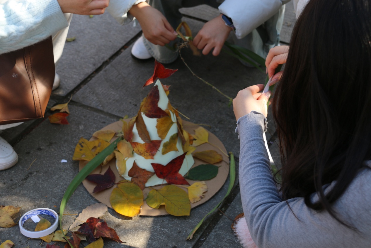 上午9时,全体成员于岳麓山校区图书馆前坪集合,以部门为单位开始了登山之旅。登山过程中,大家不仅欣赏了岳麓山深秋初冬的秀美风光,还收集了形态各异的落叶,并在山顶合力制作了独具创意的落叶帽。这一环节既锻炼了动手能力,也在轻松的氛围中拉近了彼此的距离。
