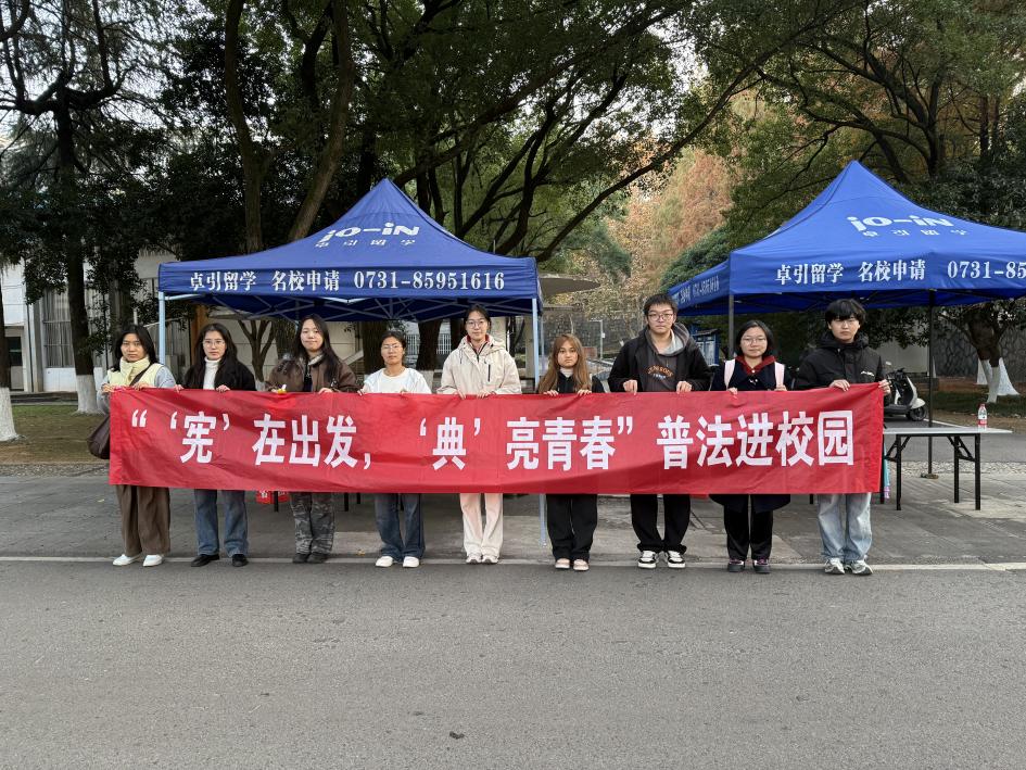 为迎接第十二个国家宪法日,深入推进“八五” 普法规划落地,切实提升在校师生法治素养,12月6日下午2时30分,我院朋辈心理互助会联合法学院朋辈心理互助会,于天心校区开展 “‘宪’在出发,‘典’亮青春”普法进校园活动,为参与活动的全体师生带来了一场兼具趣味性与实用性的法治文化普及课堂。