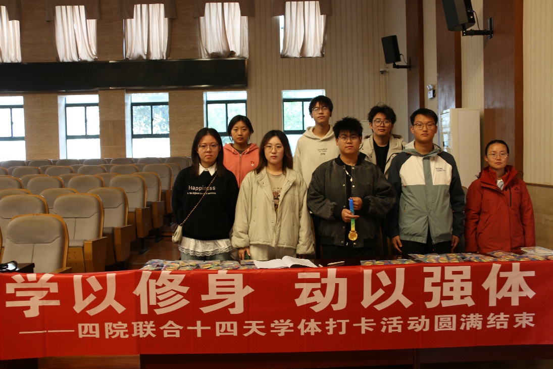 12月20日下午1时至2时30分,“十四天学体打卡计划”颁奖仪式在潇湘校区物理院102活动室举行。本次活动由我院联合土木工程学院、交通运输工程学院以及物理学院共同发起,旨在鼓励学生养成学习与运动相结合的良好习惯。该活动自11月24日启动以来,共吸引了800余名学生参与。