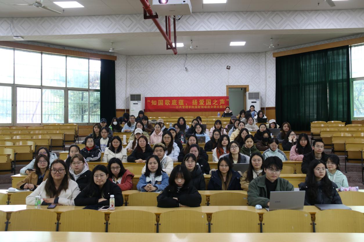 为深入学习贯彻2026年全国两会精神,进一步深化新时代爱国主义教育,3月18日下午2时,我院在世纪楼D101教室举办了“知国歌底蕴,传爱国之声”国歌领唱团分团主题活动,国歌领唱团公管院分团全体成员及学院本科生共70人参与。活动由李妮可同学主持。