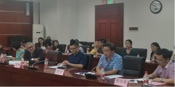 【图为英国官方365上市科研部副部长彭忠益教授主持开题会】