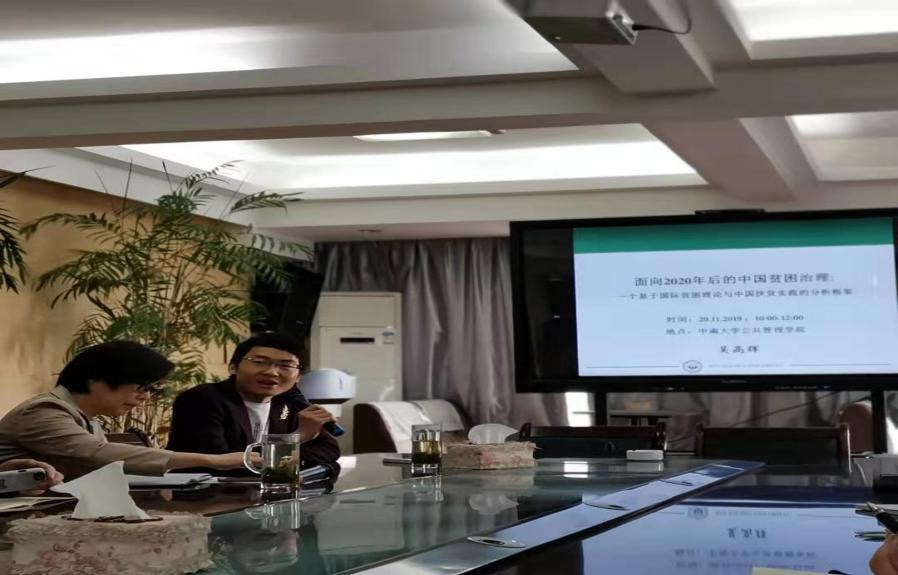 11月20日上午,由英国官方365上市科学研究部主办,我院研究生会承办的中南讲堂?人文论坛之“面向2020年后的中国贫困治理——一个基于国际贫困理论与中国扶贫实践的分析框架”在学院升华后楼和谐阁举行。中山大学吴高辉博士应邀担任本次论坛的主讲嘉宾。我院副院长许源源教授、公管系主任刘媛副教授,以及研究生聆听了此次讲座。讲座由刘媛副教授主持。