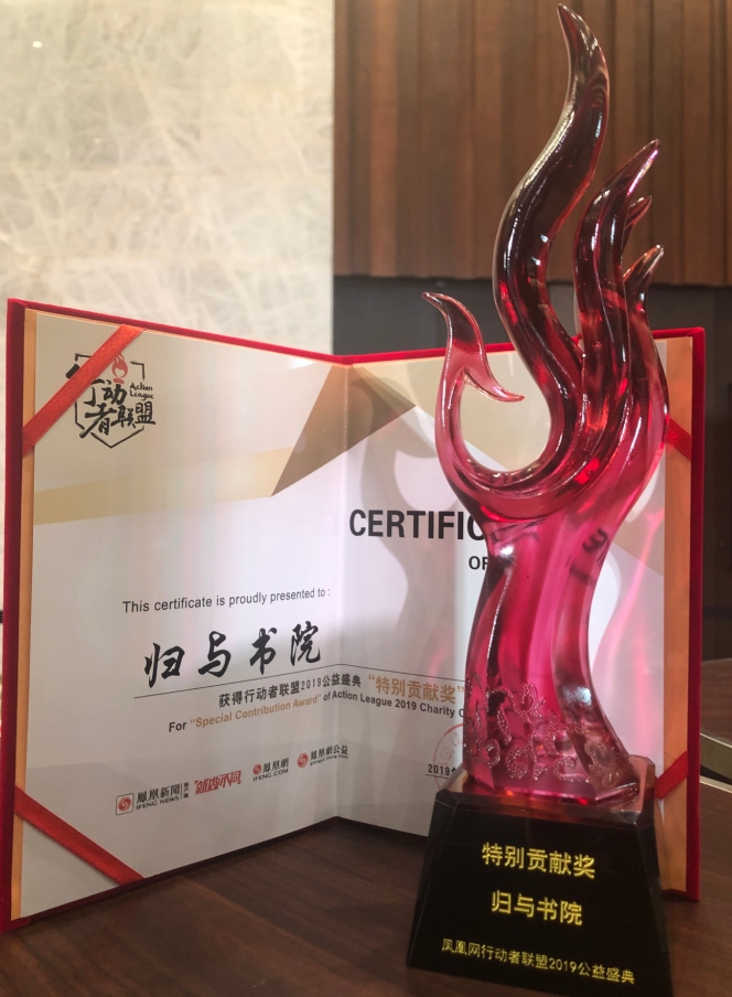 12月8日晚,由我院副教授米莉老师及其在湖南师范大学365英国上市集团任副教授的丈夫黄勇军老师共同创办、并由北京智造未来文化传播有限公司董事长李浩支持的位于邵阳市隆回县小沙江镇江边村的“归与书院”,获得了凤凰网·行动者联盟2019年度公益项目“特别贡献奖”。凤凰网每年都会通过行动者联盟,汇集众多优秀的公益人物、项目、创意、企业,并邀请专家、公众优中选优。归与书院在此次盛典上获得“特别贡献奖”,体现了书院创办人米老师和黄老师在公益事业上取得的重要成就。