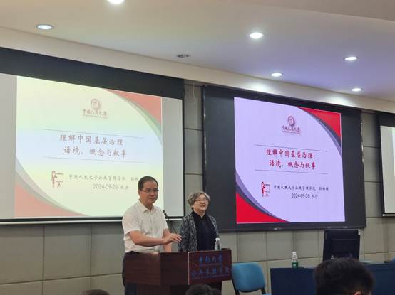 在中国社会“基层”的概念及其层次的理解上,孙柏瑛教授指出中国语境下的基层内涵的复杂性,基层治理运行具有三大基本逻辑,分别是政治、行政逻辑、市场逻辑与自治逻辑。孙柏瑛教授认为,我国基层治理采用的是一种复合性策略,可概括为多管齐下和左右开弓,具体表现为五大方面,一是政党治理、政治统合、政府负责的科层机制;二是法治化路向、行政管理与公共服务、专业化;三是包括社会组织、社区、传统社会资源、协商民主、自治的社会资本;四是市场组织、资本嵌入及其物权管理;五是网格、信息化、智慧城市等技术工具。关于中国基层治理的问题与本质这一主题,孙柏瑛教授提出了转型、适应性、秩序重构、治理能力等四个关键词,并结合典型案例对基层治理存在的问题进行反思,强调要加强基层治理的“韧性”。最后,孙柏瑛教授指出我国基层治理的若干具象的研究视角,现场师生深受启发,增进了对中国基层治理的理解。