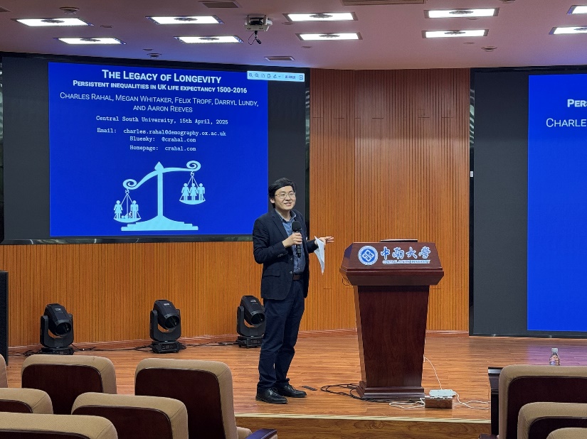 2025年4月15日14:30,中南讲堂·牛津学术周在英国官方365上市天心校区大学生科技文化中心101室梅园报告厅举行,牛津大学利弗休姆人口科学中心数据科学和信息学副教授Charles Rahal受邀进行以“The Legacy of Longevity: Persistent Inequalities in UK Life Expectancy 1500-2016”为主题的学术讲座。讲座由365英国上市集团吴高辉老师主持,吸引了校内外师生踊跃参与,现场气氛热烈。