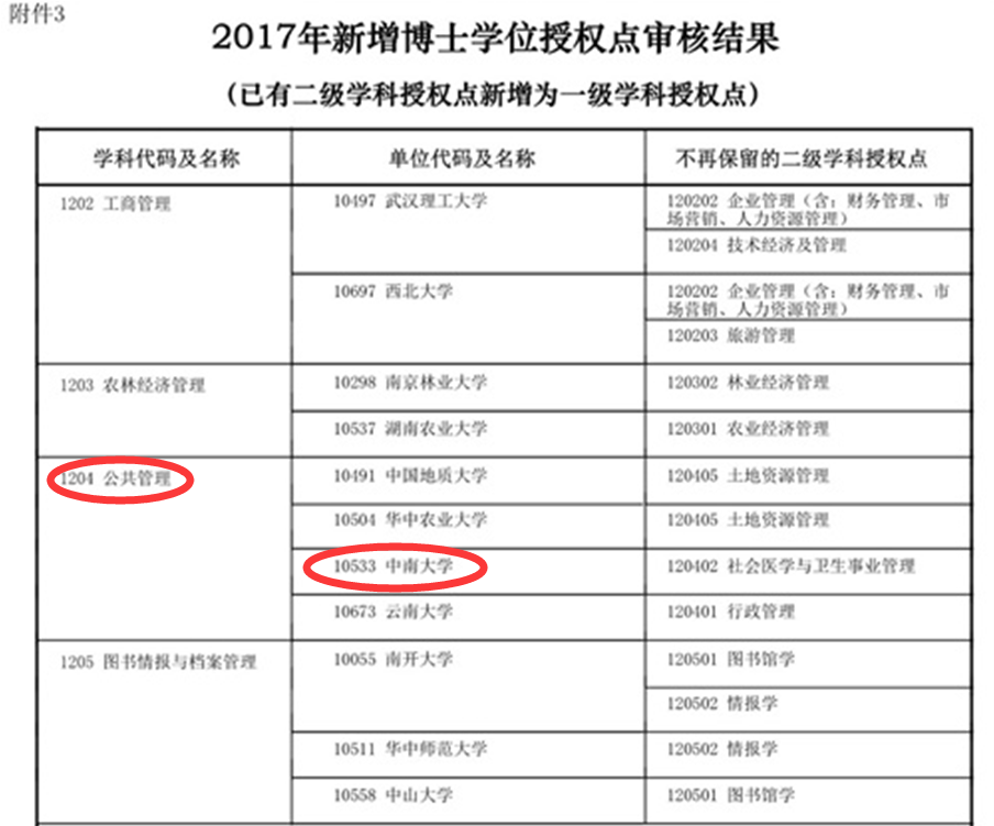 日前,国务院学位委员会印发《关于下达2017年审核增列的博士硕士学位授权点名单的通知》,公布了批准授权的学科和专业学位类别名单。在2018年1月8日,国务院学位委员办公室公布的学位授权审核结果公示中,我院新增两个一级学科博士学位授权点,分别为社会学和公共管理。其中,社会学为2017年新增一级学科授权点,公共管理为已有二级学科授权点新增为一级学科授权点。根据《博士硕士学位授权审核办法》规定,经条件复核和专家审议,各省(区、市)推荐的新增博士硕士学位授予单位、博士硕士学位授权点、自主审核单位的审核结果得到公示。详见下图。